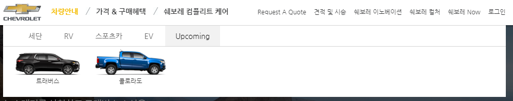 쉐보레 홈페이지 Upcoming 가 올라 왔다.
