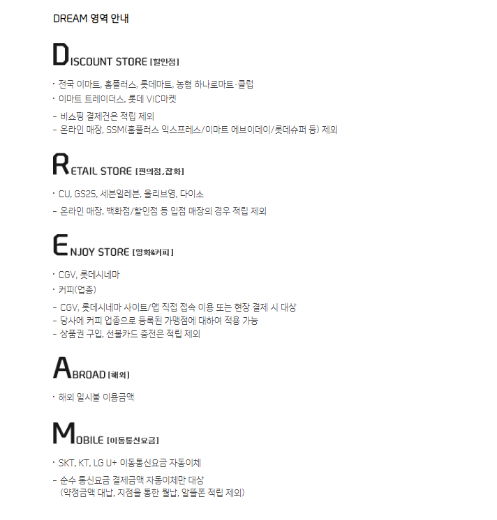 체크 카드를 먼가 많이쓴 영역까지 만들려 하네. 드림 영역에서 많이쓴 영역이니까 드림 영역은