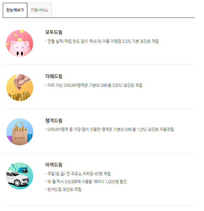 아껴 드림은 주유 적립이랑 택시 할인 . 이고 , 반겨 드림은 머 체크 카드로 3달안에 80만원 쓰면