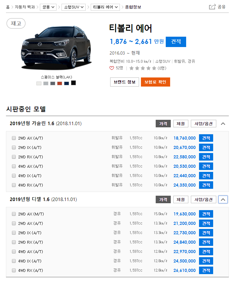 티볼리 에어 단종되어서 아쉽군.