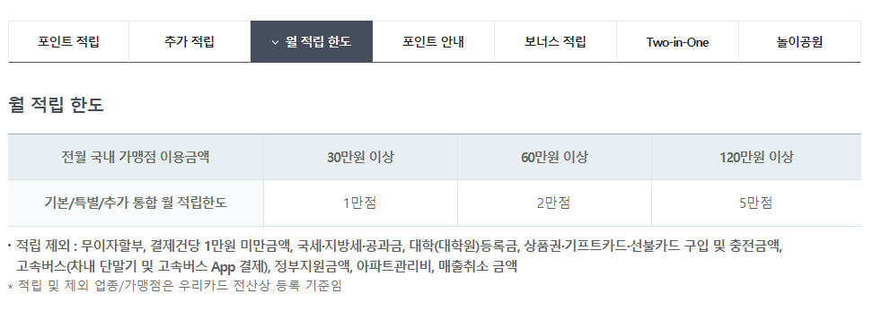 대충 적립 한도 있고 , 적립 한도는 대부분 있고 , 항공 마일러지 적립 가면 그냥 무한으로 되기도 하고