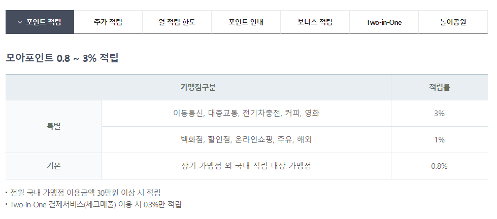 포인트 0.8 ~ 3% 까지 적립이라 포인트가 많이 주는 편이고