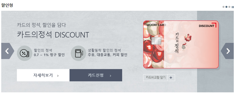 일단 포인트형 , 할인형 , 체크카드 가 있고.