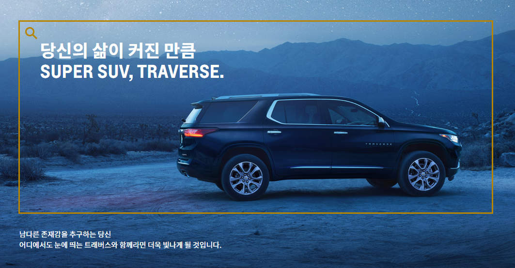 쉐보레에서도 뒤 늦게 트래버스 차량을 수입하여 판매를 계시 하였고 , 진작에 좀 팔지 .