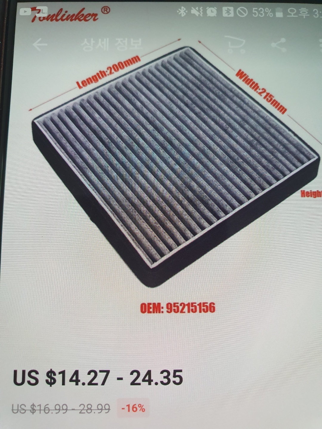쉐보레 차량은 기본 에어컨 필터가 상당히 고급형이 들어 간다.