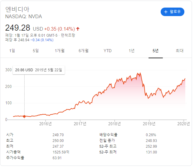 2018년 하반기 부터 2019년 까지 죽쓰던 엔비디아 주식이