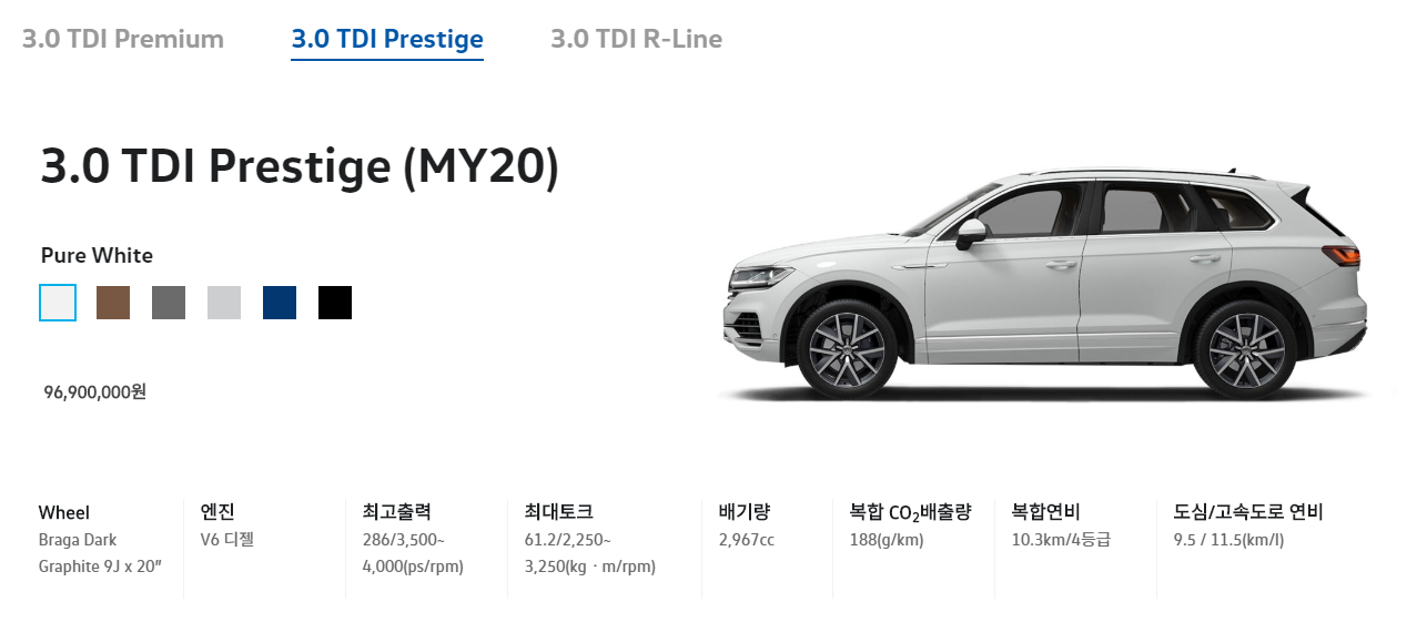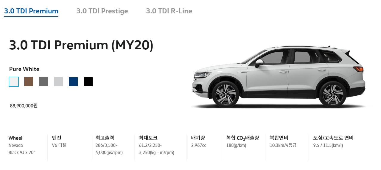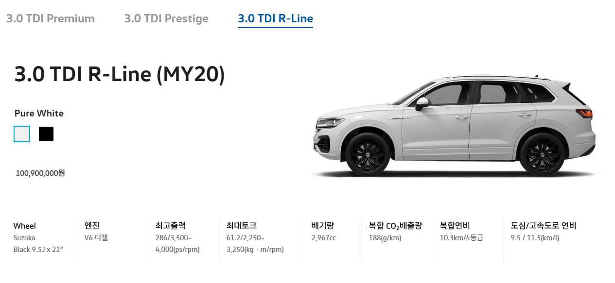 투아렉 차량은 디젤 3.0 으로 판매를 한다.