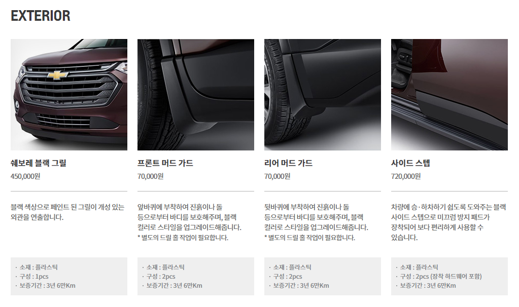 쉐보레 트래버스 액세서리를 따로 팔고 있따.