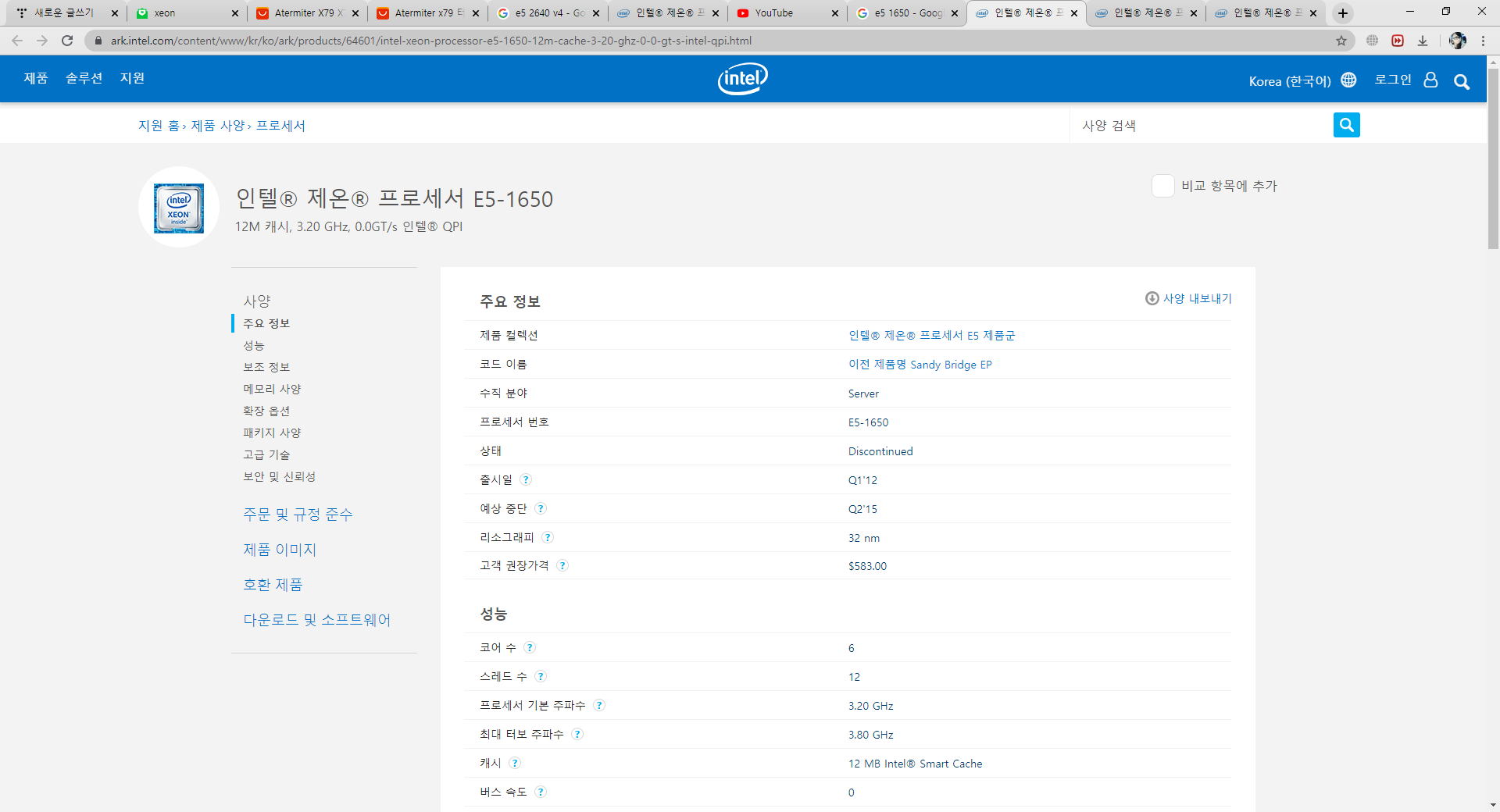 인텔 제온 CPU 중 최근에 저렴한 버전이 E5 1650 이 있다.