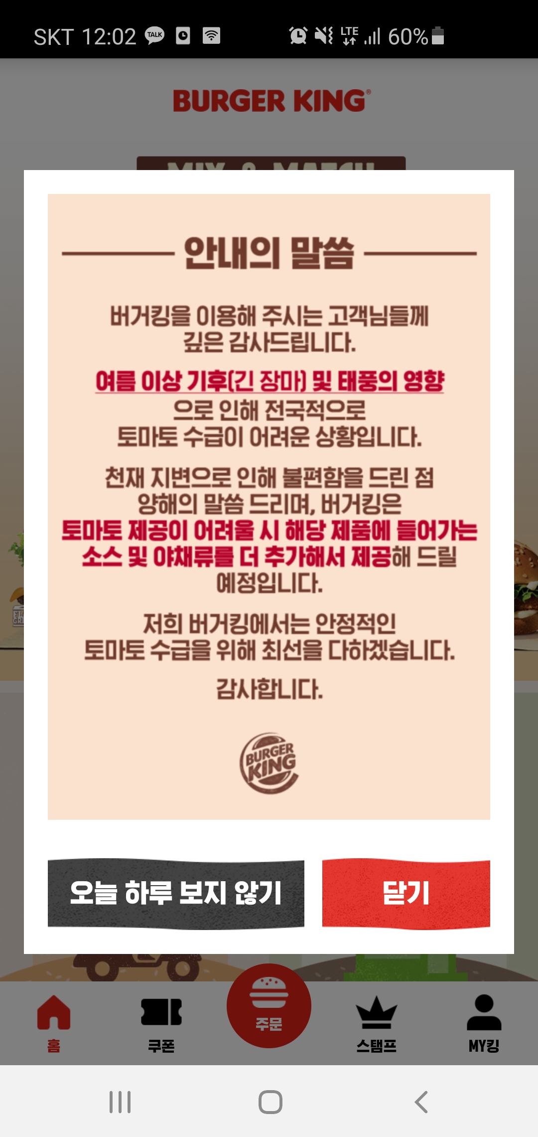 머..어찌든 버거킹에서는 토마토 대란이 날꺼 같고.