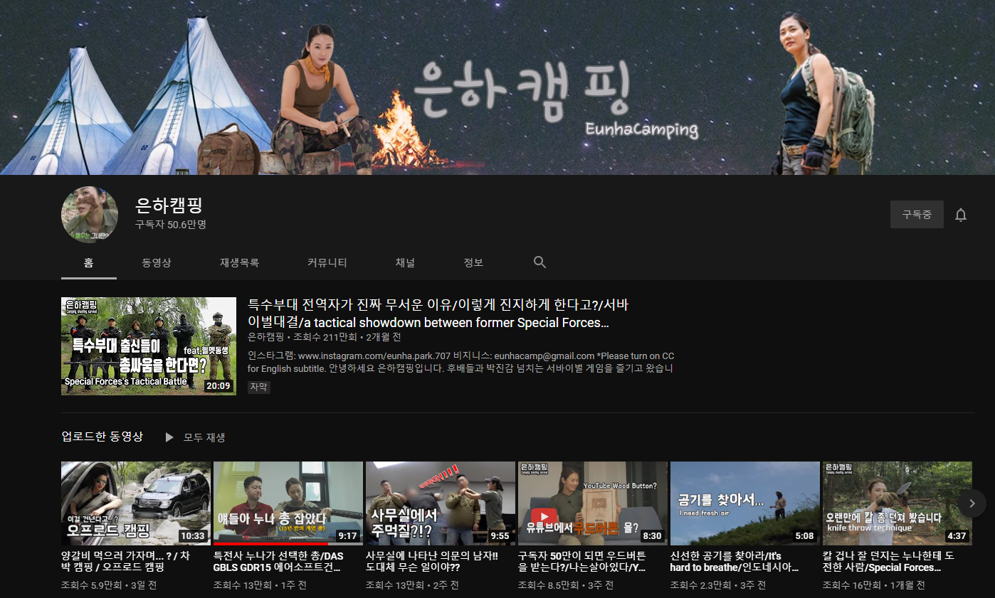 특수부대 출신이신 은하 누님 유투브 채널 이다.