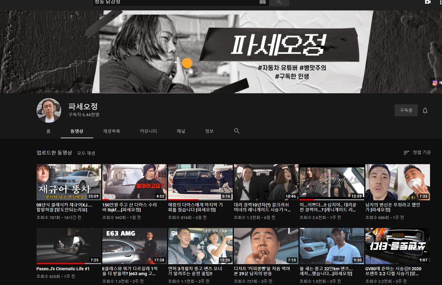 파세오정 채널인데 정말 재미있게 차량을 리뷰해 주신다.