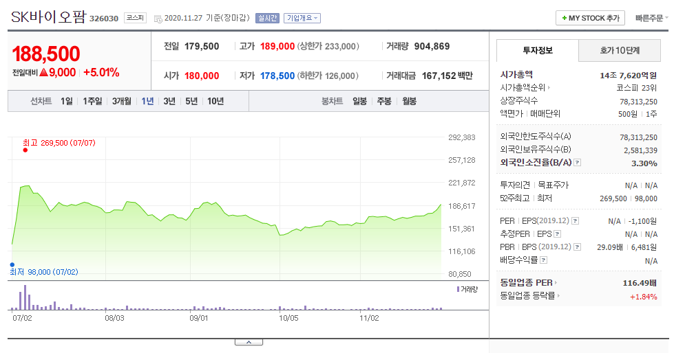 그리고 2020년 금년에는 SK바이오 상징하면서 시장에 이슈를 모으기도 하였고