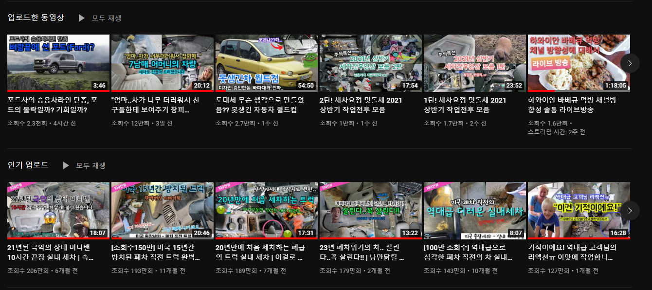 그리고 세차비용을 안받고 그냥 서비스로 세차 작업을 진행하는 영상도 많이 있다.