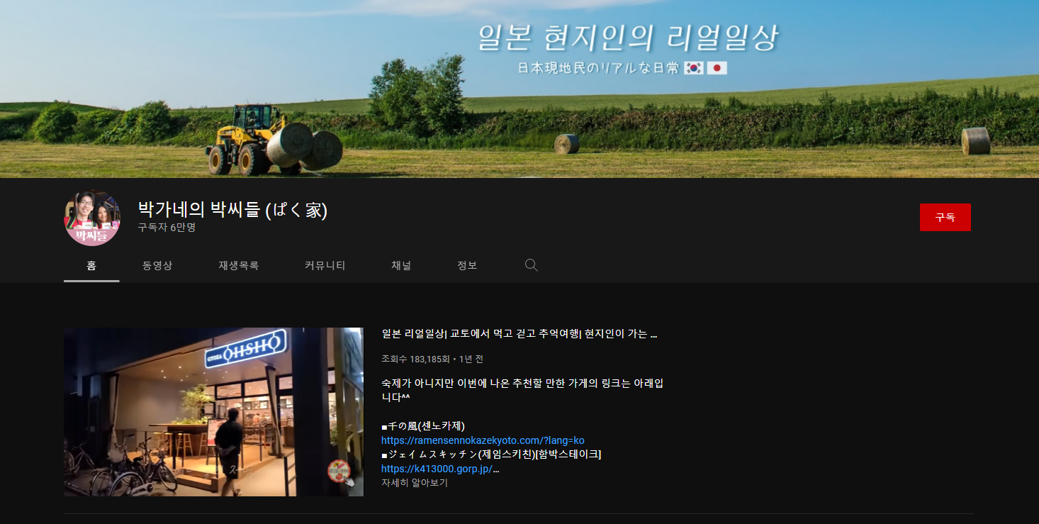 박가네 에서 오상 , 주미꼬 가 메인 방송 말고 서브 채널인데 주로 일본에서 생활 하거나 음식점 등