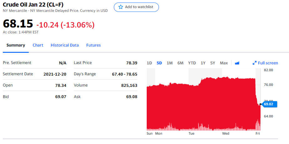 미국 주식이 추수감사절 휴가 하고 금요일이라 오전장만 열었는데 크게 폭락 했다.