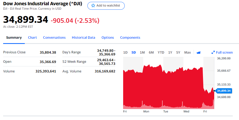 일단 다우가 -900 정도 하락 하였다.