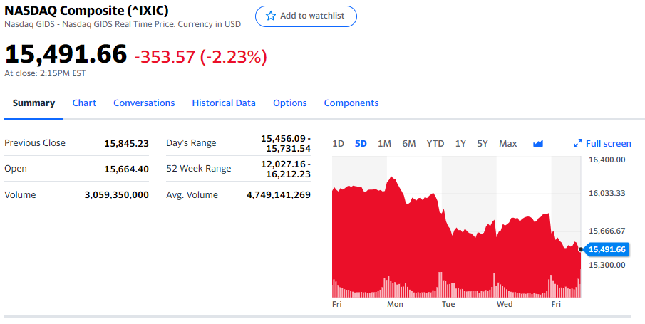 나스닥도 비슷하게 내렸다.