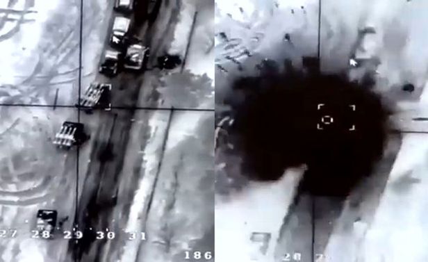 우크라이나 가 터키에서 도입한 드론 으로 공중에서 후방 전차 부대에게 치명적인 피해를 주고 있다.