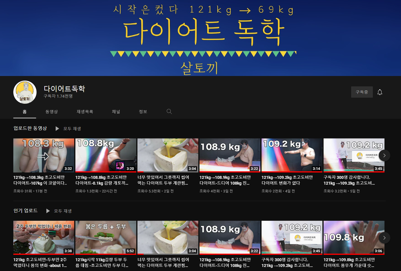 다른 한채널은 다이어트 독학이다.