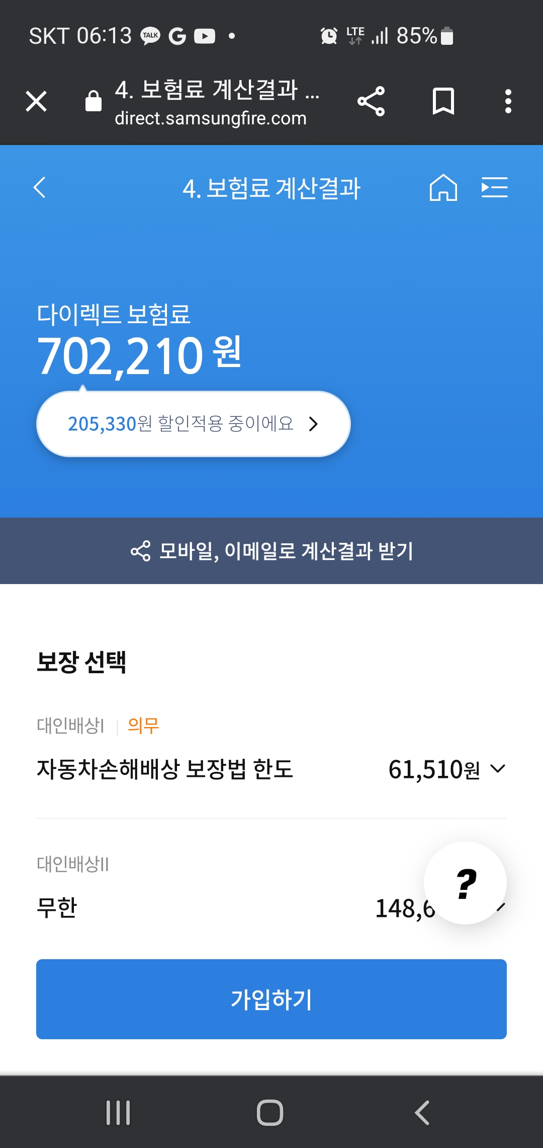 역시나 보험료는 상당하다.