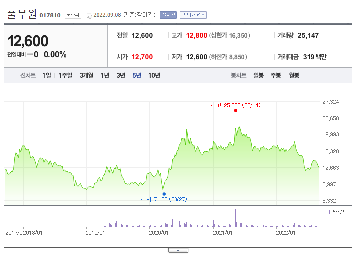 풀무원 주식 가격