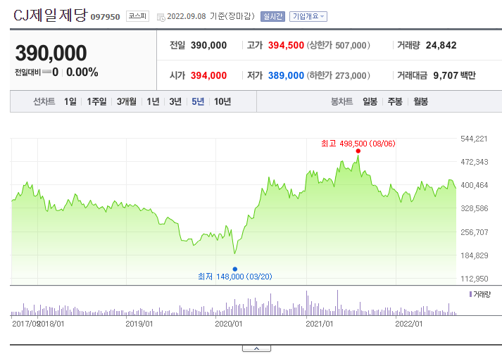 CJ제일제당 주식가격