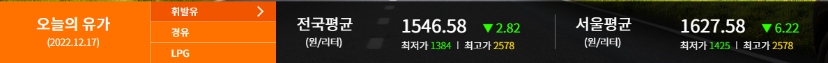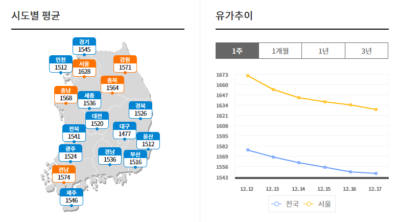 11월까지만 해도 휘발유 가격이 약간 올라가는 추세 였던거 같은데.