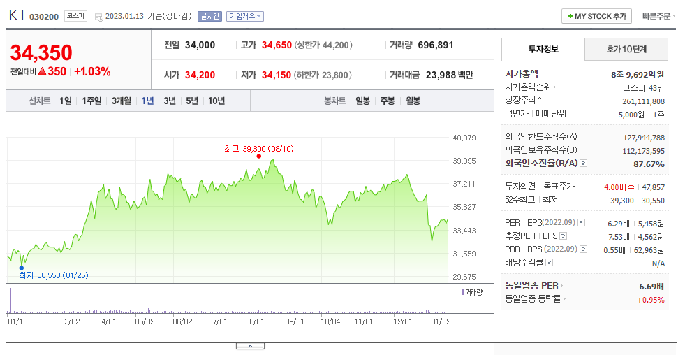 KT 도 3만원 이상 매도 , 2만원 에서 매수 였는데 지금은 3만원 넘어 가고 있다.