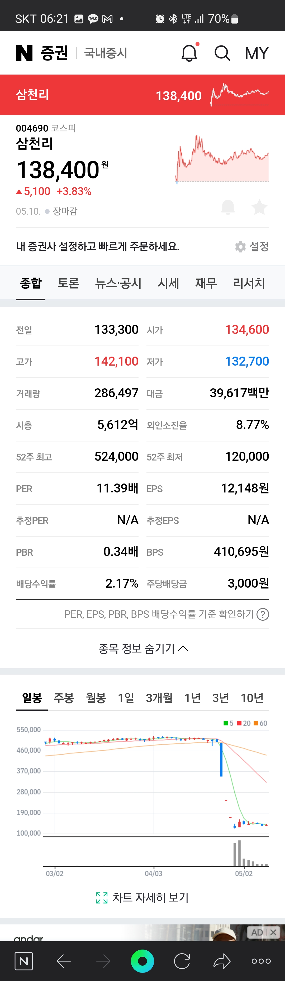 삼천리는 모처럼 주식시장에서 주목을 받으면서 간만에 주가도 조회도 해보고...