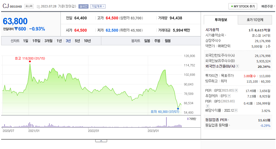 | CJ 주식 62,700원 23.07.11 (0) | 2023.07.11 |