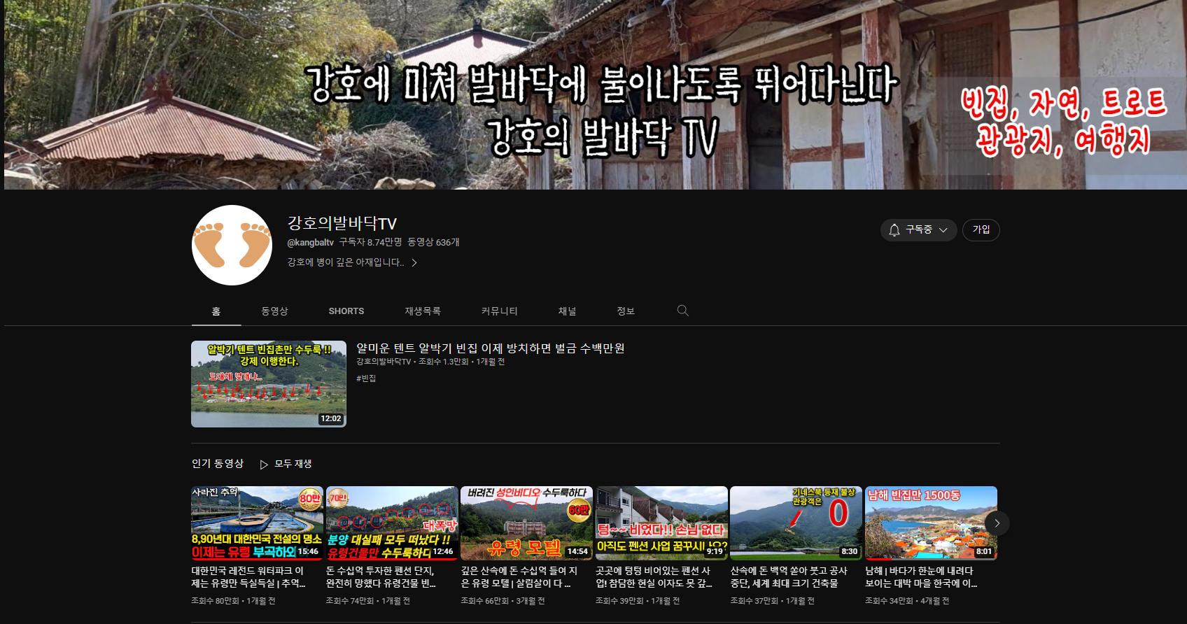 부곡하와이 영상 덕분에 알게된 채널인데 , 정말 최근에 매일 매일 보고 있다.
