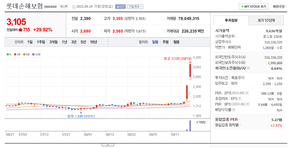 롯데손해보험 - 네이버페이 증권 : 네이버페이 증권