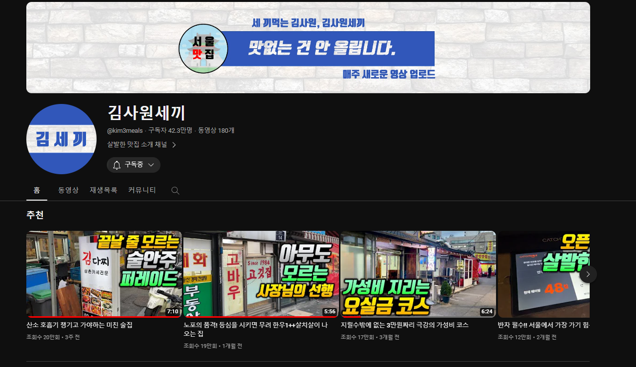 비슷한 컨셉의 유투버 분들이 더 계시기는 한데 , 김사원 님 영상은 업로드 할때마다 바로 달려가서