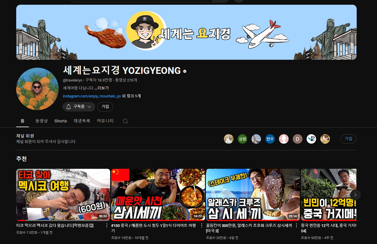 정말 재미 있는 여행 유튜버 채널이다.
