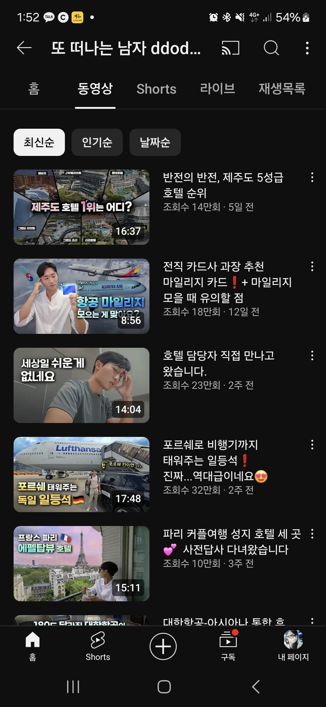 그렇지만 구독자 수는 또 떠남 채널이 5배 이상 많이 있다.