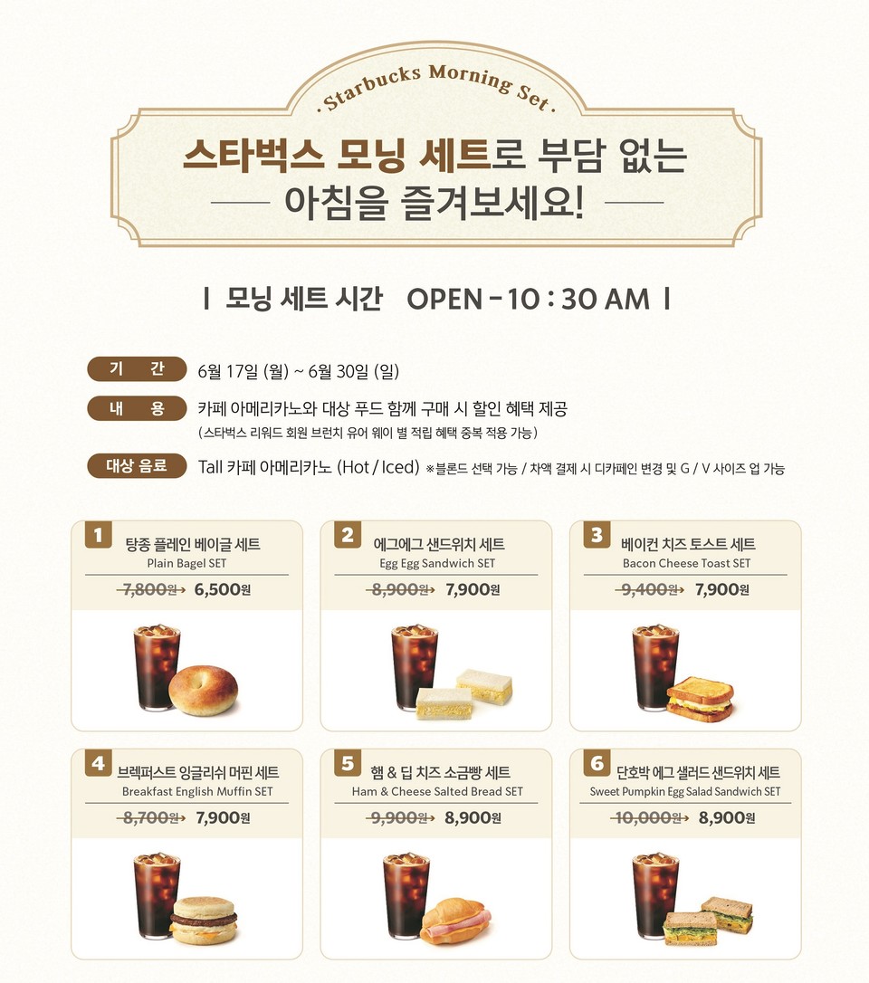 스타벅스 메뉴에 모닝세트가 생겼다.