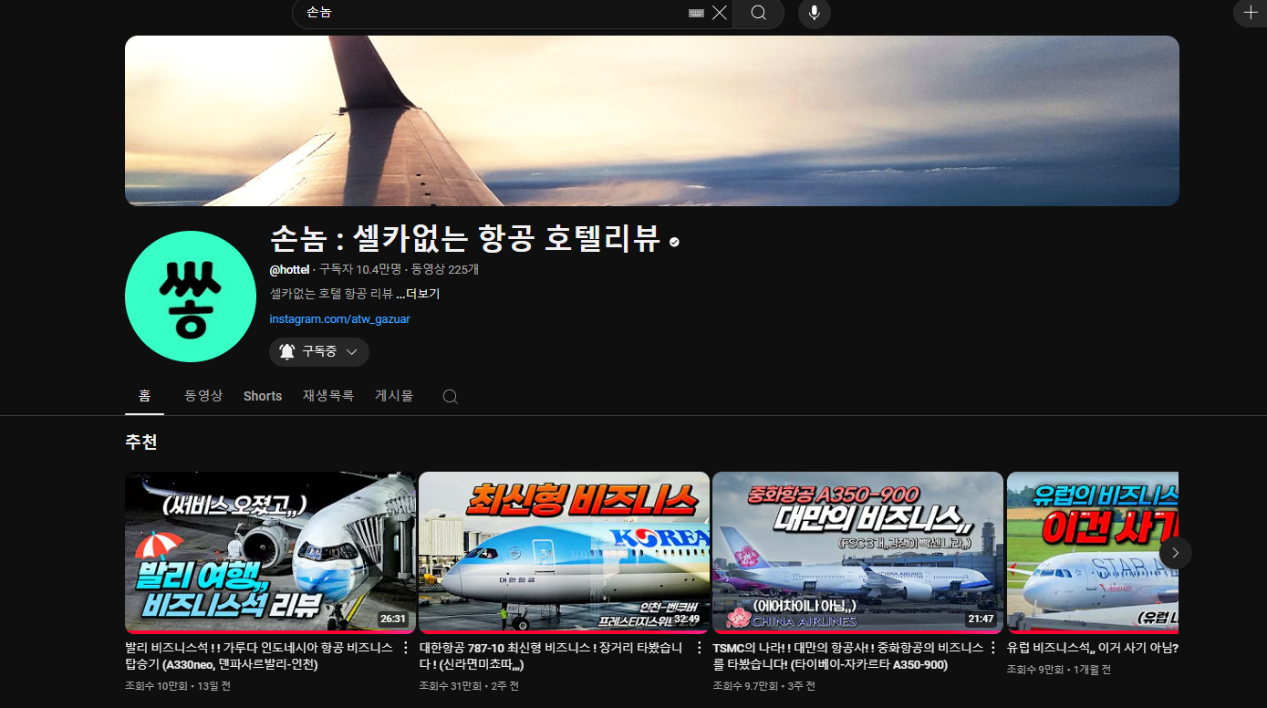채널명 : 손놈 : 셀카없는 항공 호텔리뷰