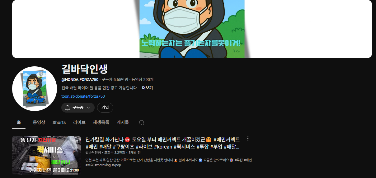 아직 야마하 티맥스 로 배달 하시는 형님들 채널은 못찾고 있다.