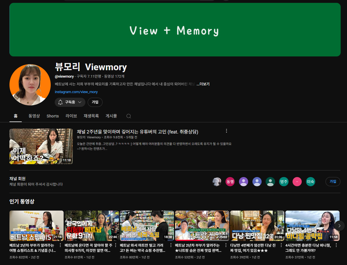 베트남 여행 유튜버는 뷰모리님 말고 황세유기님도 있는데 ,