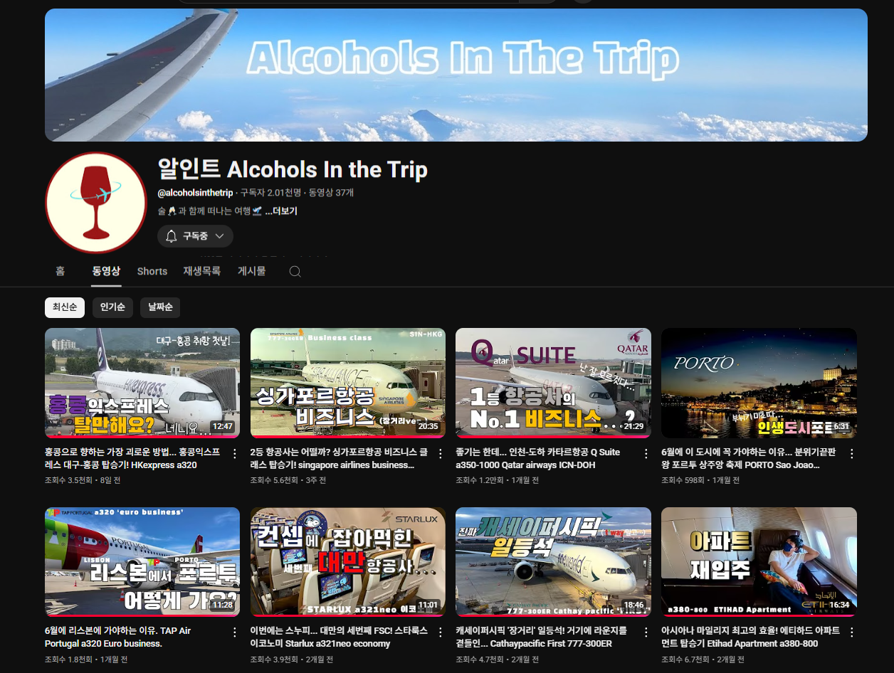 최근에 자주 보고 있는 항공 유튜버 채널 알인트 이다.