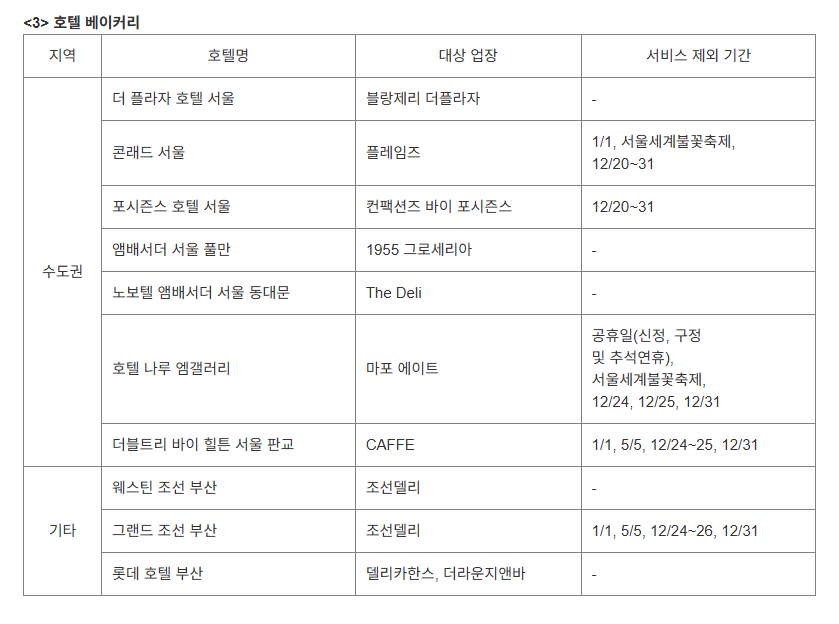 호텔 레스토랑 이나 베어커리 에서 할인이 되는 혜택인데 ,