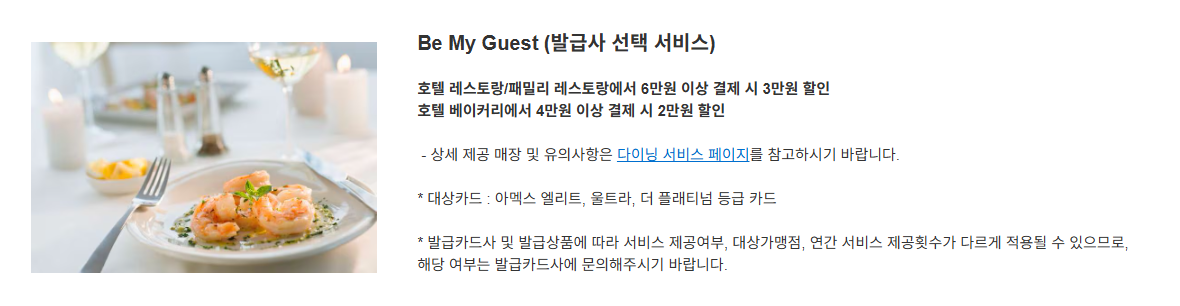 아멕스 카드 다이닝 혜택 ㅣ 아메리칸 익스프레스 코리아