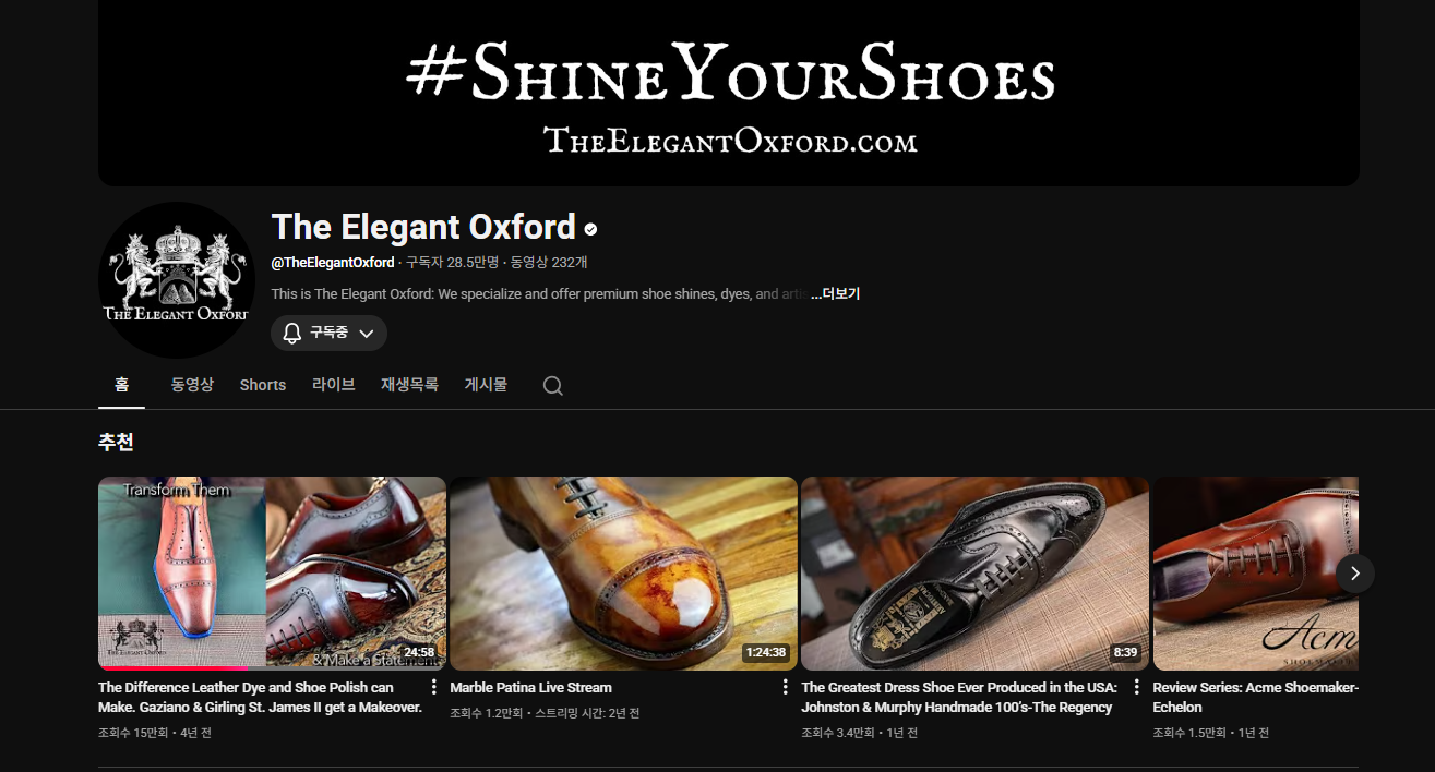 최근에 구두 관련 유튭 채널을 보고 있다.