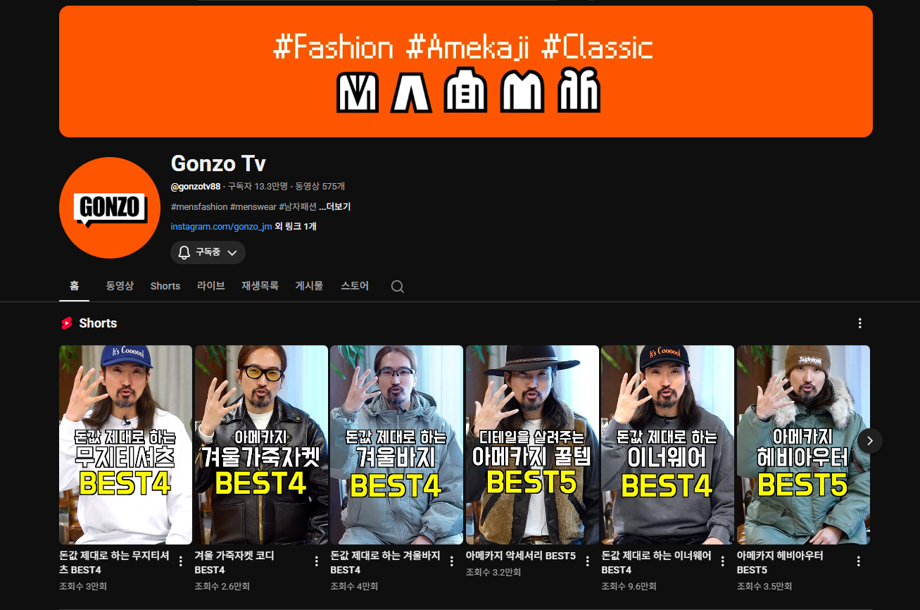그냥 남성 패션 잡지를 보는거 같은 채널이다.