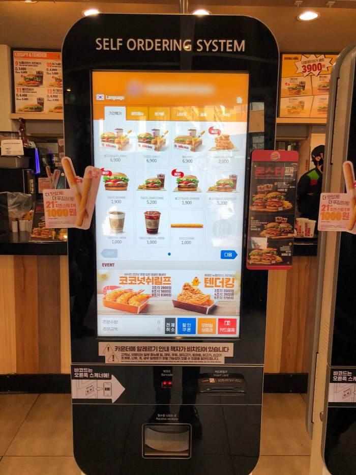 그냥 주문을 받아도 될꺼 같은데 굳이 키오스크를 사용한다.