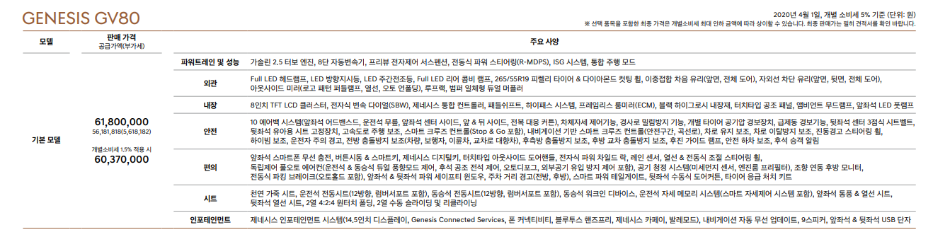 제네시스 GV80 가솔린 모델까지 출시 되었다.