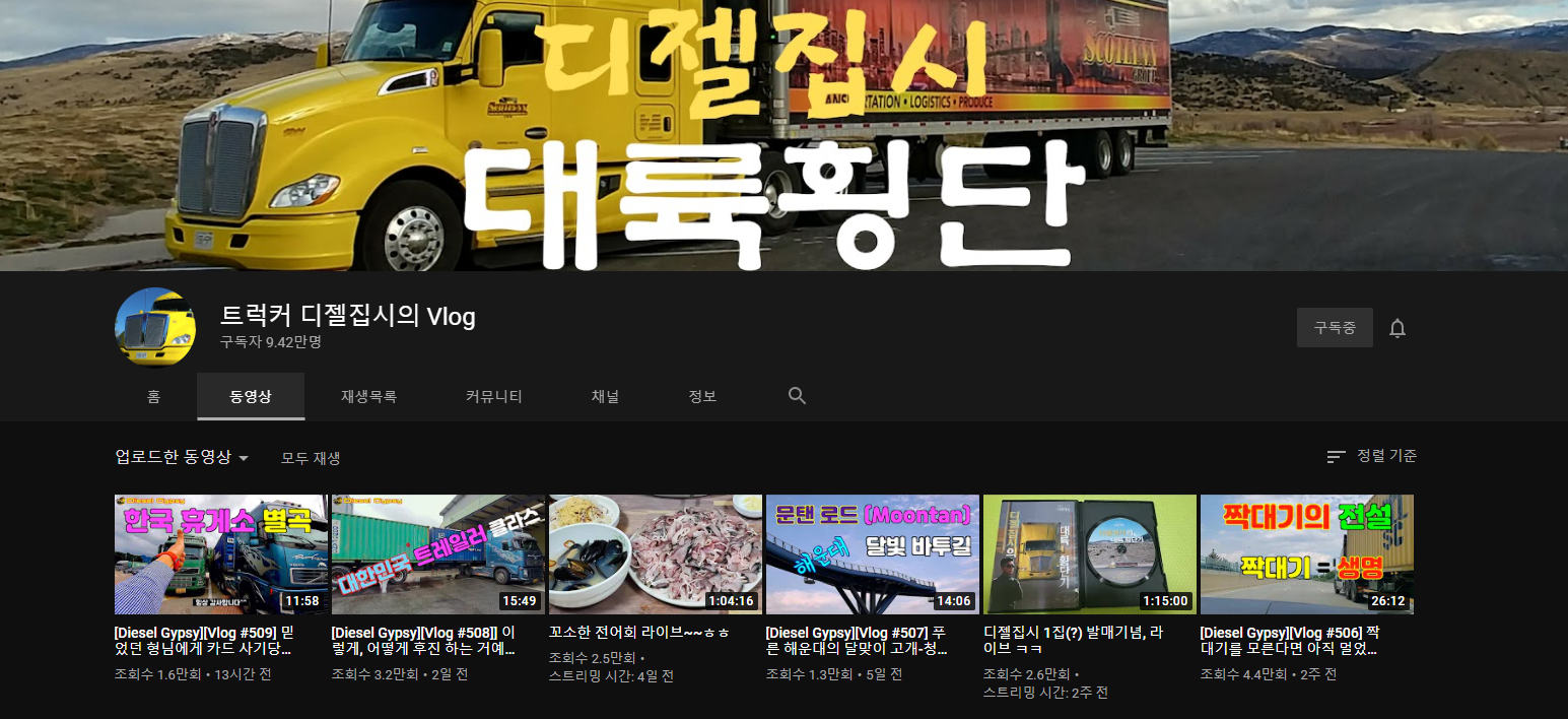 쿠나트럭님 영상도 잼있는데 최근에는 디젤형님 영상더 많이 보고 있다.