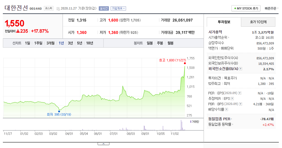 평소 아는 지인들에게 껌사먹는샘 치고 대한전선 주식좀 사 노라고 했는데
