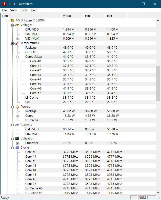적당히 유튜브 보고 있는 상황에서 적정 온도를 유지 하고 있다.